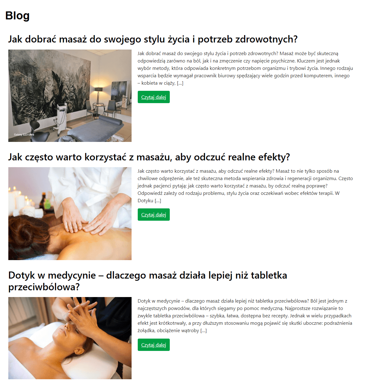 Ważnym etapem strategii było uruchomienie sekcji blogowej, która wcześniej nie istniała na stronie. Jej celem jest budowanie wizerunku eksperta, poszerzanie widoczności w wyszukiwarce na frazy informacyjne oraz wspieranie pozycjonowania usług lokalnych.