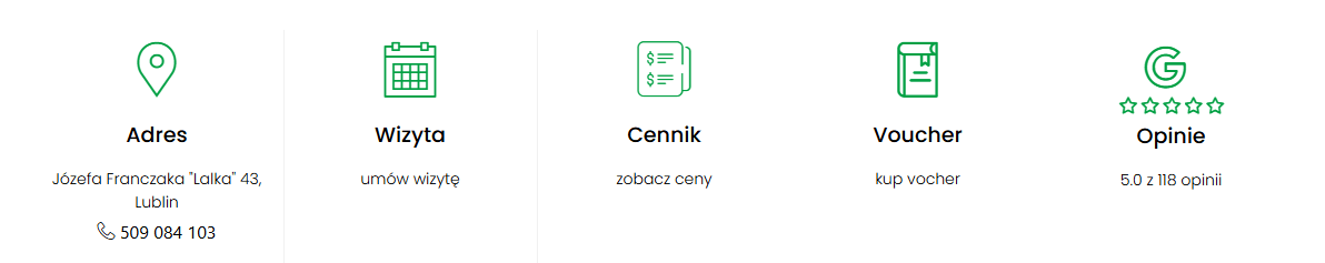 Regularnie publikowane są artykuły edukacyjne i poradnikowe, oparte na najczęściej wyszukiwanych pytaniach użytkowników oraz doświadczeniu gabinetu. Zastosowano w nich dobre praktyki SEO, obejmujące m.in. właściwą strukturę, nagłówki i dobór słów kluczowych.